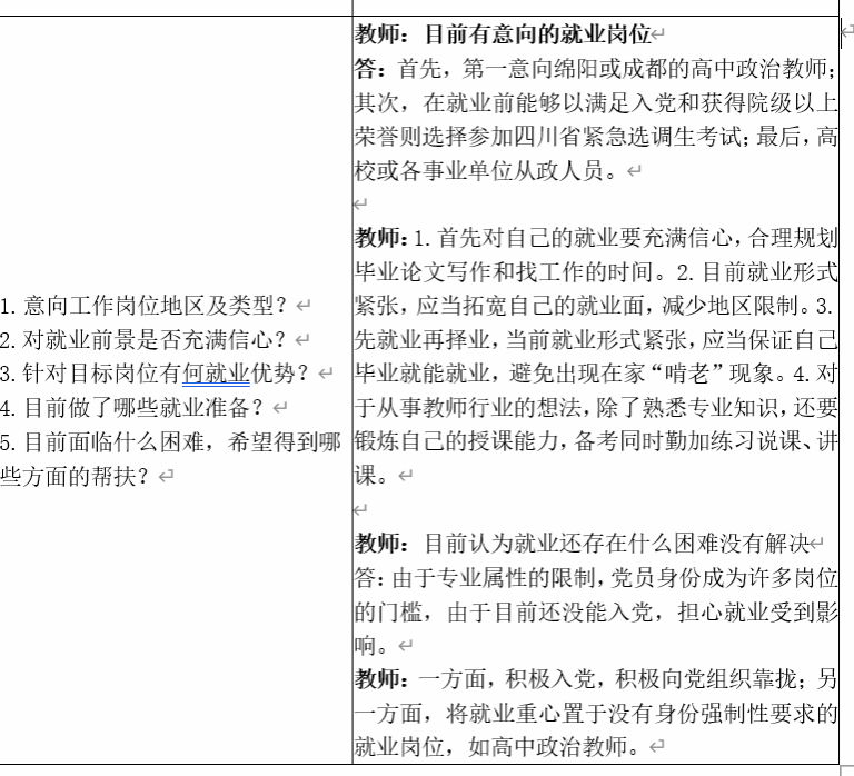 研职有方,岗位“精准推”。毕业生和帮扶教师座谈结束后,辅导员收集了每个学生的求职意向,发挥“宣传员”作用,采取“一人一策”,并建立微信群,依托全媒体平台,及时筛选、整合“国家24365大学生就业服务平台”、“PP电子游戏网站就业指导服务中心”、“马克思主义理论就业”等多个渠道的就业推送,搜集招聘信息资源,精准推送优质岗位信息,打破信息壁垒。