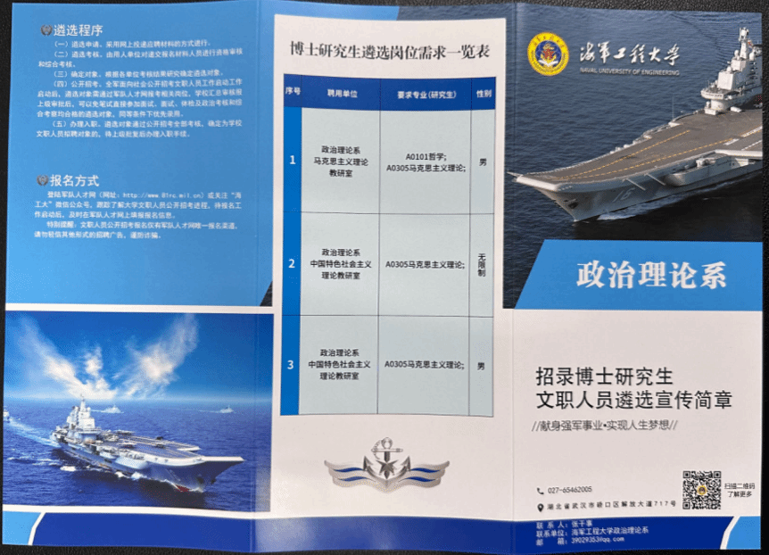 此次宣讲会旨在吸引优秀毕业生加入海军工程大学,共同致力于国防教育和思想政治理论的研究与实践。宣讲会上,刘涛书记详细介绍了海军工程大学的悠久历史、光荣传统以及近年来在学科建设、人才培养和科研创新等方面取得的显著成就。随后,刘书记针对学校政治理论系的情况以及福利待遇、报名条件等详细介绍,海军工程大学政治理论系下设马克思主义理论、中国特色社会主义理论、党史军史和军队政治工作4个教研室,建有政治能力训练和心理训练与咨询两个中心。最后,他介绍了院系人才招聘的基本条件,包括招聘政策和目前招聘情况、人才需求、岗位设置、教研室工作等内容。通过刘书记的介绍大家对海军工程大学政治理论系招录情况及其工作内容都有了进一步的了解。