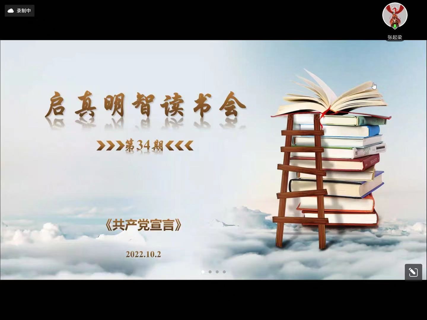 2022年10月2日,PP电子游戏网站PP电子游戏网站第34期“启真明智”读书会通过腾讯会议顺利举行。本次读书会由学院张起梁老师主持,丁社教老师、聂阳老师、杨冰郁老师作客云端与硕博同学们一起阅读马克思和恩格斯的经典著作,为《共产党宣言》著作的阅读形成了一个良好的开端。