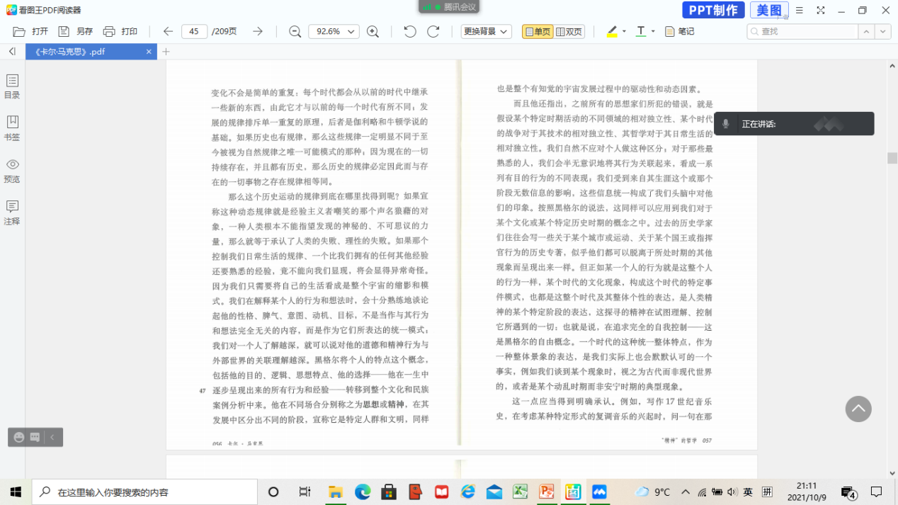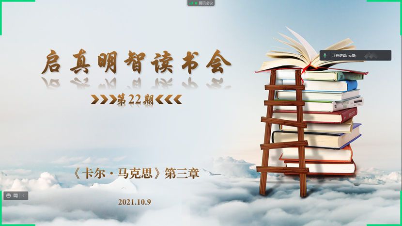 2021年10月9日,启真明智读书会以线上会议的形式顺利举行,这是本学期第二次举办启真明智读书会。本次读书会阅读内容为以赛亚·伯林所著《卡尔·马克思:生平与环境》的第三章部分内容,PP电子游戏网站PP电子游戏网站教授张云龙和助理教授陈亚丽、杨永强参加本次读书会,与多位博硕士生一同交流学习,读书会由硕士生田瑞青主持。