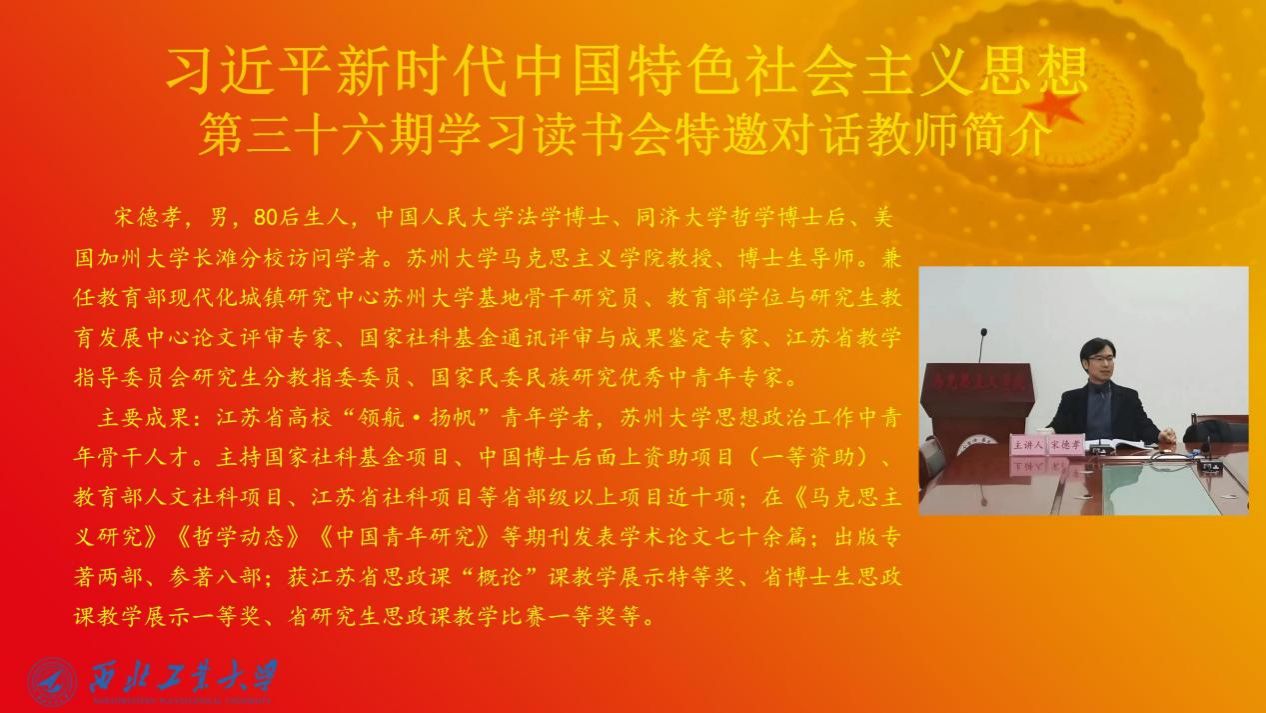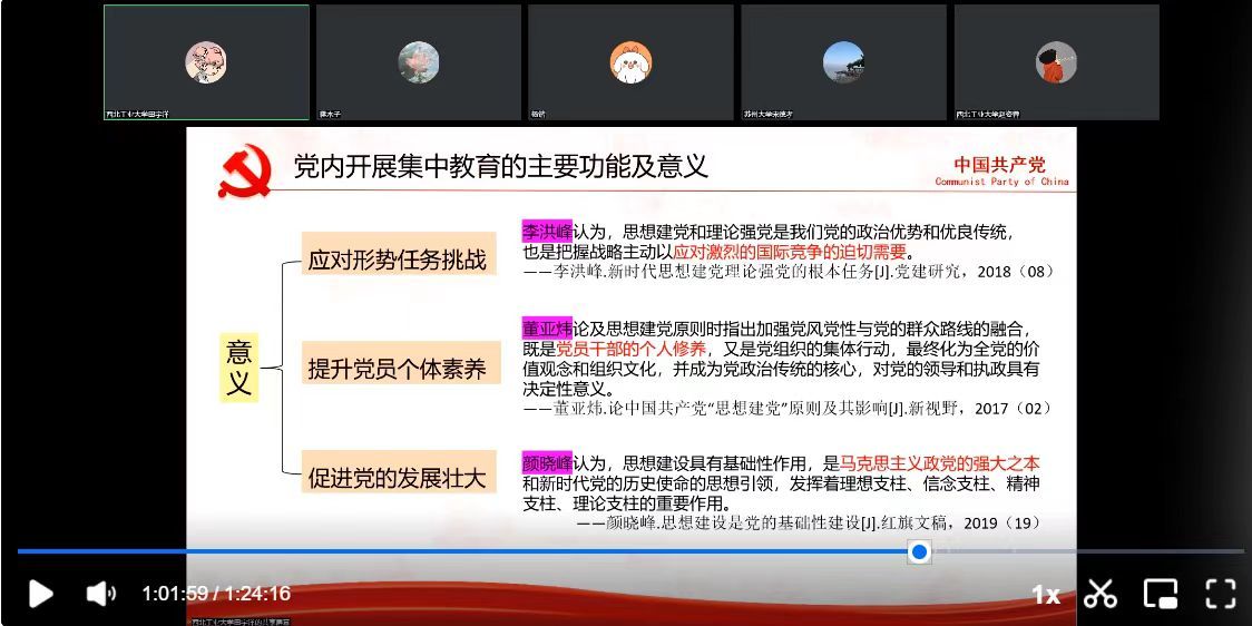 为全面学习贯彻党的二十大精神,推进习近平新时代中国特色社会主义思想进教材、进课堂、进头脑。2023年5月27日,PP电子游戏网站PP电子游戏网站习近平新时代中国特色社会主义思想学习读书会第三十六期活动主题围绕《习近平在学习贯彻习近平新时代中国特色社会主义思想主题教育工作会议上的讲话》进行学习研讨。本次读书会由学院思想政治教育系主任、博士生导师鲁杰教授发起,学院硕士生杨锴主持,苏州大学PP电子游戏网站博士生导师宋德孝教授作为对话教师应邀参加。