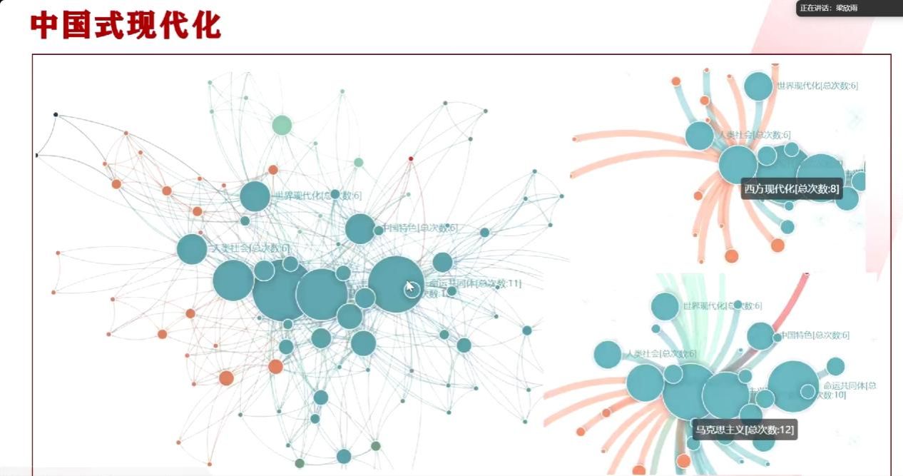 接着,PP电子游戏网站PP电子游戏网站硕士生梁欣雨同学,从中国式现代化的探索历程、中国式现代化的丰富内涵与中国式现代化的世界意义三个方面对文本内容进行了全面系统的解读。同时,她运用知网可视化分析对中国式现代化相关论文与选题进行了分析,为大家展示了文献收集学习的方法。