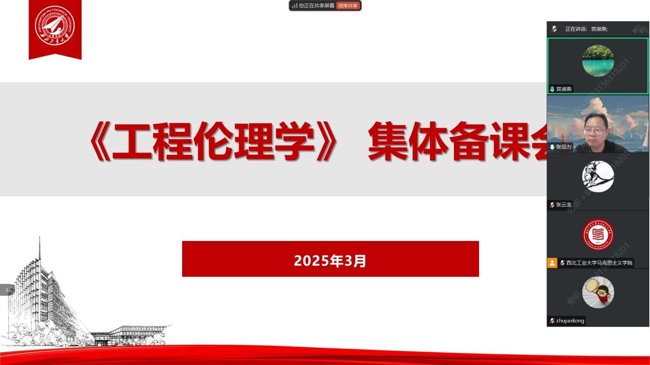 备课会伊始,课程负责人宫淑燕对张恒力教授的到来表示热烈欢迎,并简要介绍了本课程的教学现状。PP电子官网工程伦理学课程面向研究生开设,为 2 学分、32 课时,每学期开课规模达班均150人以上,教学任务由课程组十位老师共同承担。随着技术的快速发展,尤其是以Deep Seek为代表的新兴技术的出现,工程伦理学的教学内容和方法亟待更新与完善。在此背景下,本次备课会的召开显得尤为必要。