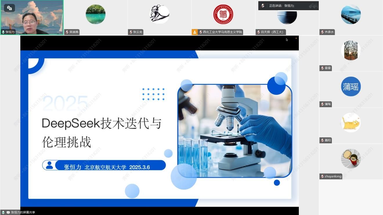 PP电子游戏网站《工程伦理学》课程组于3月6日晚上以线上会议的方式成功召开新学期集体备课会。本次会议由课程负责人宫淑燕副教授主持,特邀北京航空航天大学张恒力教授为主讲嘉宾,为课程组教师带来了一场题为《Deep Seek技术迭代与伦理挑战》的精彩报告。全体课程组成员相聚云端,共同探讨当下前沿技术对工程伦理教育的深远影响,为新学期的教学工作奠定坚实基础。