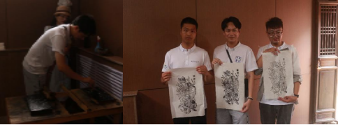 除了民俗文化的展示,周家大院还在“非遗文化遗产展厅”设置了游客体验区。在这里,我们可以亲自动手印制木版年画。这种互动体验形式不仅增加了游览的趣味性,更让我们深入了解当地的文化习俗。同学们体验后表示,要制作出一幅完美的年画,还是需要细心耐心用心的操作,并非一件易事。