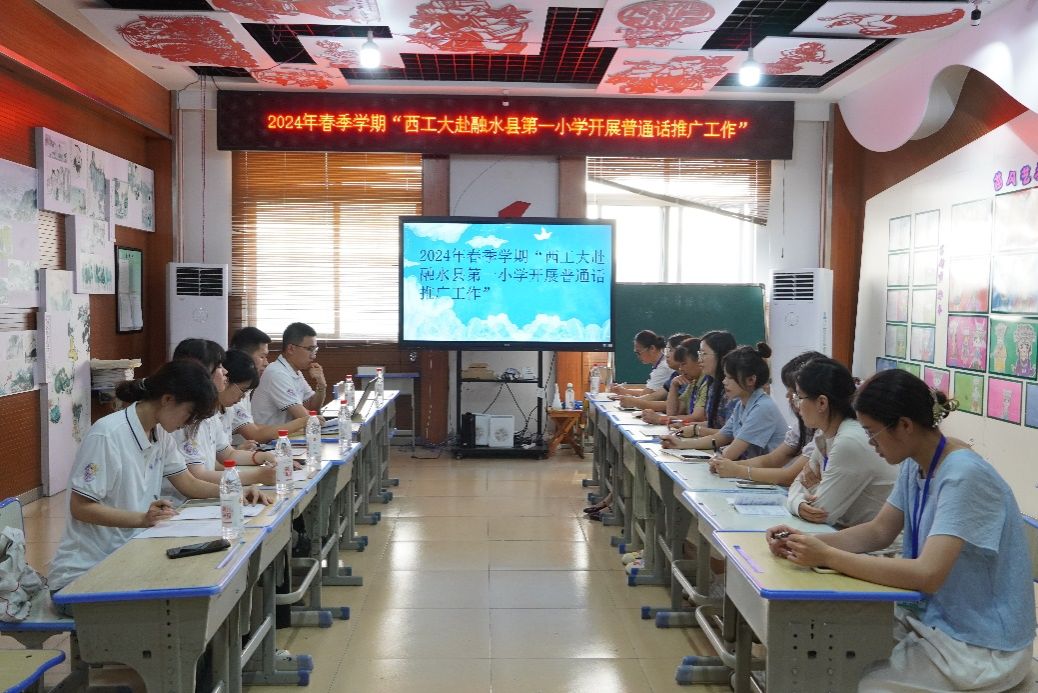 为深入贯彻落实党的二十大关于“加大国家通用语言文字推广力度”的决策部署,贯彻落实习近平总书记关于教育的重要论述和关于推广国家通用语言文字的重要指示精神,促进少数民族地区人才培养,引导学生为乡村振兴和现代化建设事业贡献青春力量。2024年7月10日下午,PP电子游戏网站PP电子游戏网站“苗乡振兴·水韵融情”实践队赴广西融水苗族自治县第一小学开展座谈调研。融水苗族自治县第一小学教务处主任与教师代表参加座谈。
