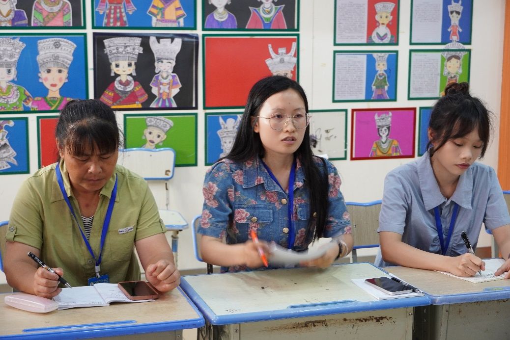 会议开始,教务处主任韦永姿介绍了在校学生的基本情况以及学校在开展普通话教育方面取得的成效。韦主任指出,推广普通话对于提高学生的语言表达和沟通能力发挥着重要作用,对于推进乡村振兴具有重要意义。一直以来,学校高度重视普通话教育工作,开展“国旗下的演讲”、朗诵比赛、手抄报创作、“你教我普通话,我教你民族语”等系列活动,增强普通话学习的趣味性;积极打造“普通话校园”,为学生营造良好的普通话学习环境;定期开展教师普通话培训,提高教师自身能力,优化教学方式方法,更好开展普通话教学。