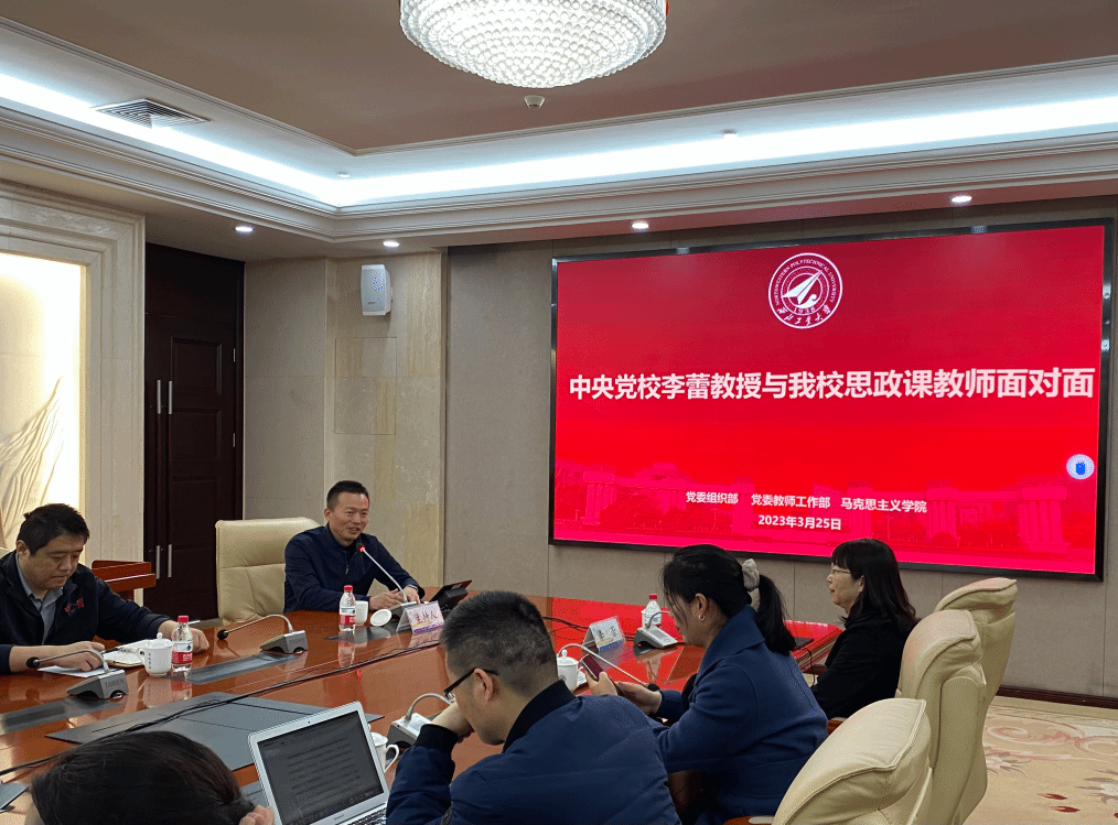 3月25日上午,中央党校李蕾教授与PP电子官网思政课教师面对面活动在友谊校区国二会议室召开。本次座谈会在学校党委组织部、党委教师工作部的大力支持下,邀请到中央党校经济学教研部教授、中央党校创新工程执行专家、中央党校经济学部科研秘书,省部级干部培训班主讲教师李蕾教授,同PP电子官网思政课教师进行交流座谈。PP电子游戏网站思政课教师参与座谈会,会议由PP电子游戏网站党委副书记(主持工作)蒲传新主持。