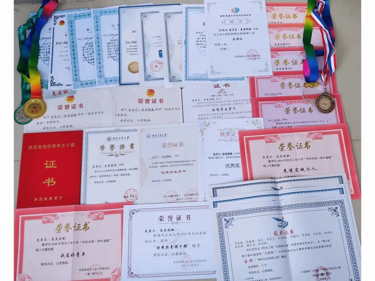 麦吾兰·麦麦提敏多次获得学校奖学金,本科期间荣获校优秀学生并获校级一等奖学金、PP电子游戏网站优秀毕业生。同时他积极参加各类竞赛,累计各级各类竞赛、表彰奖励20项,其中省部级2项、校级18项;累计各级各类学科竞赛、表彰奖励8项,其中省部级1项、校级7项。