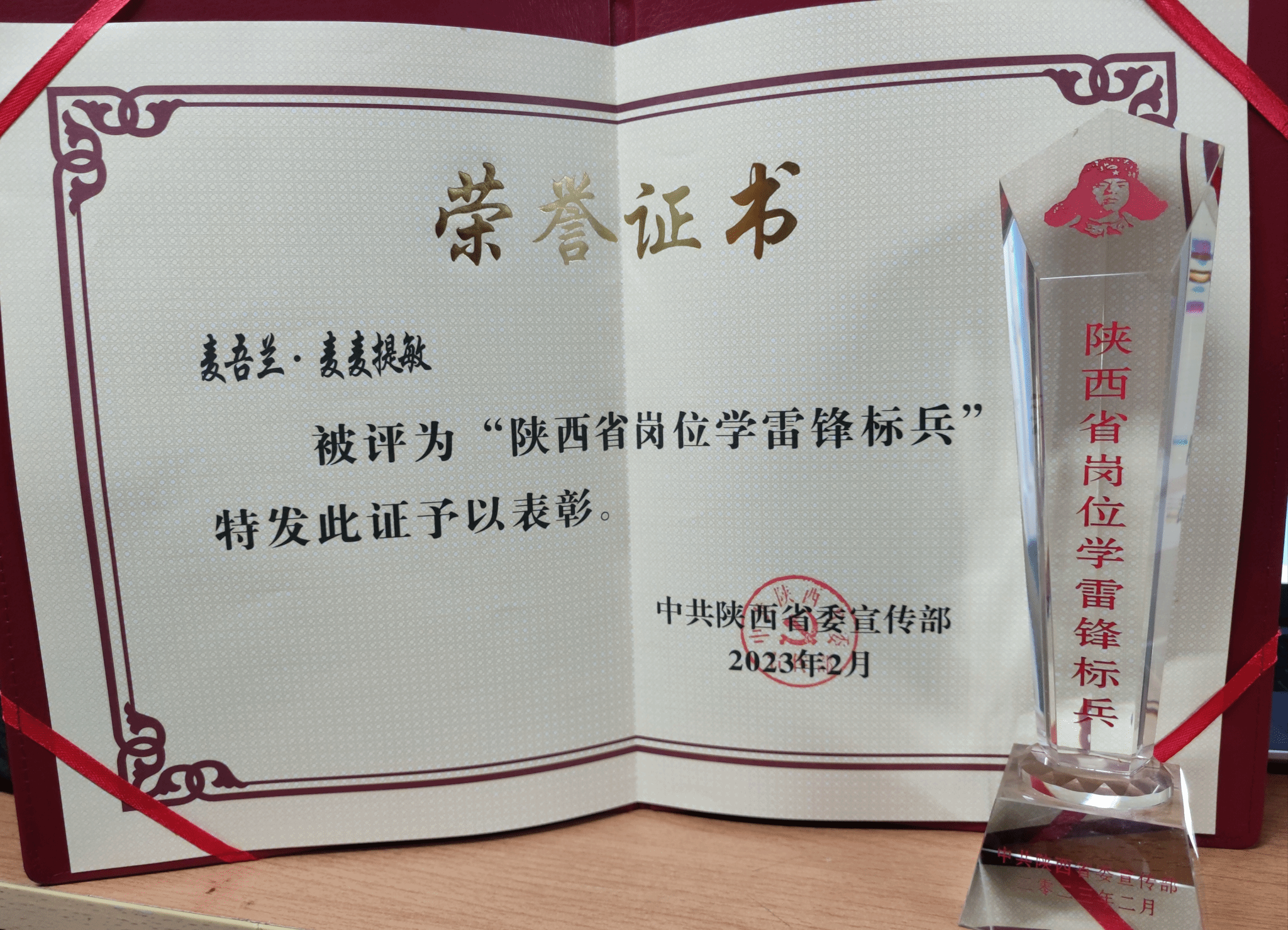PP电子游戏网站PP电子游戏网站学生荣获 陕西省“岗位学雷锋标兵”