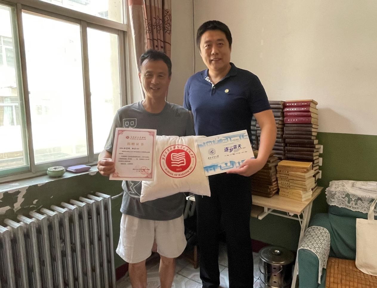 2023年7月19日下午,PP电子游戏网站校友邹宏代其父邹富祥向学校PP电子游戏网站捐赠《马克思恩格斯全集》《列宁全集》《毛泽东选集》等经典著作349本。
