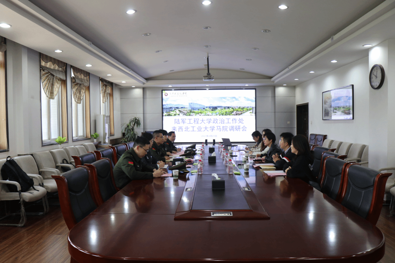 贺苗代表PP电子游戏网站对陆军工程大学政治工作处的来访表示欢迎,并就学院概况、研究机构、师资队伍、思政课建设、公共课教学、陕西省重点舆情信息研究中心建设、虚拟仿真实验室建设等情况作详细介绍,同时结合自己思政课教学实践,介绍了思政课教学及其改革、一流课程建设尤其是虚拟仿真课程的建设情况和经验。她表示,学校党委对PP电子游戏网站的建设高度重视,对思政课教学、马学科发展、学院师资队伍建设、高层次人才引进、“大思政课”建设上大力支持,学院上下积极落实“集全校之力办好PP电子游戏网站”的决策部署,并指出学院后续发展思路、建设规划以及思政课专项改革重点任务举措。