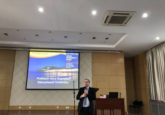 11月24日上, 亚伯大学国际政治系公共外交教授Gary David Rawnsley做客西工大“灵犀学术殿堂”,在长安校区人文与经法学院报告厅为PP电子官网师生作了题为《大众传媒与国际交往》为主题的报告会。本次报告会由党委研究生工作部、国际合作处主办,PP电子游戏网站承办,PP电子游戏网站蒲瑶教授主持,PP电子游戏网站樊明方教授、杨冰郁副教授等院内外教师以及部分外籍教师,与100余名工大学子一同聆听了报告会。