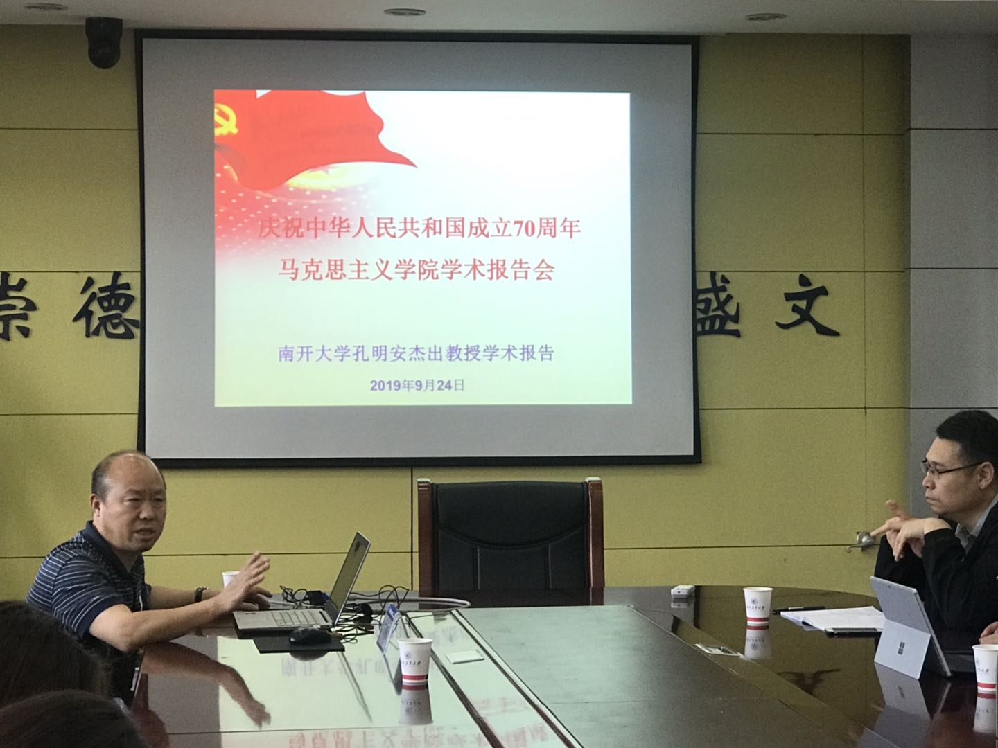 为庆祝中华人民共和国成立70周年,学院特邀请南开大学PP电子游戏网站杰出教授、博士生导师、原中共中央编译局研究员、《哲学动态》编辑部副主任、《马克思主义与现实》执行主编孔明安老师9月24日下午为PP电子游戏网站PP电子游戏网站师生做了一场题目为“当代国外马克思主义前沿研究与中国现实问题”的精彩学术报告。报告会由PP电子游戏网站PP电子游戏网站副教授、博士生导师曹瑜老师主持,PP电子游戏网站鲁杰教授、马军、陶惠敏和马超等老师与PP电子官网部分博士、硕士研究生一同聆听了报告。