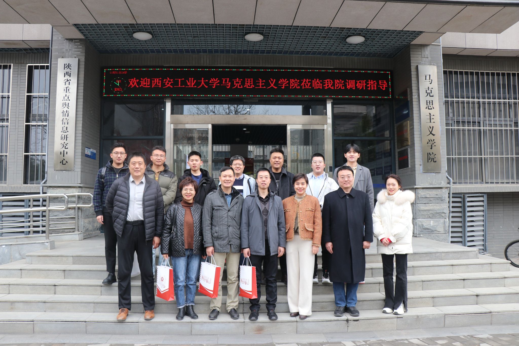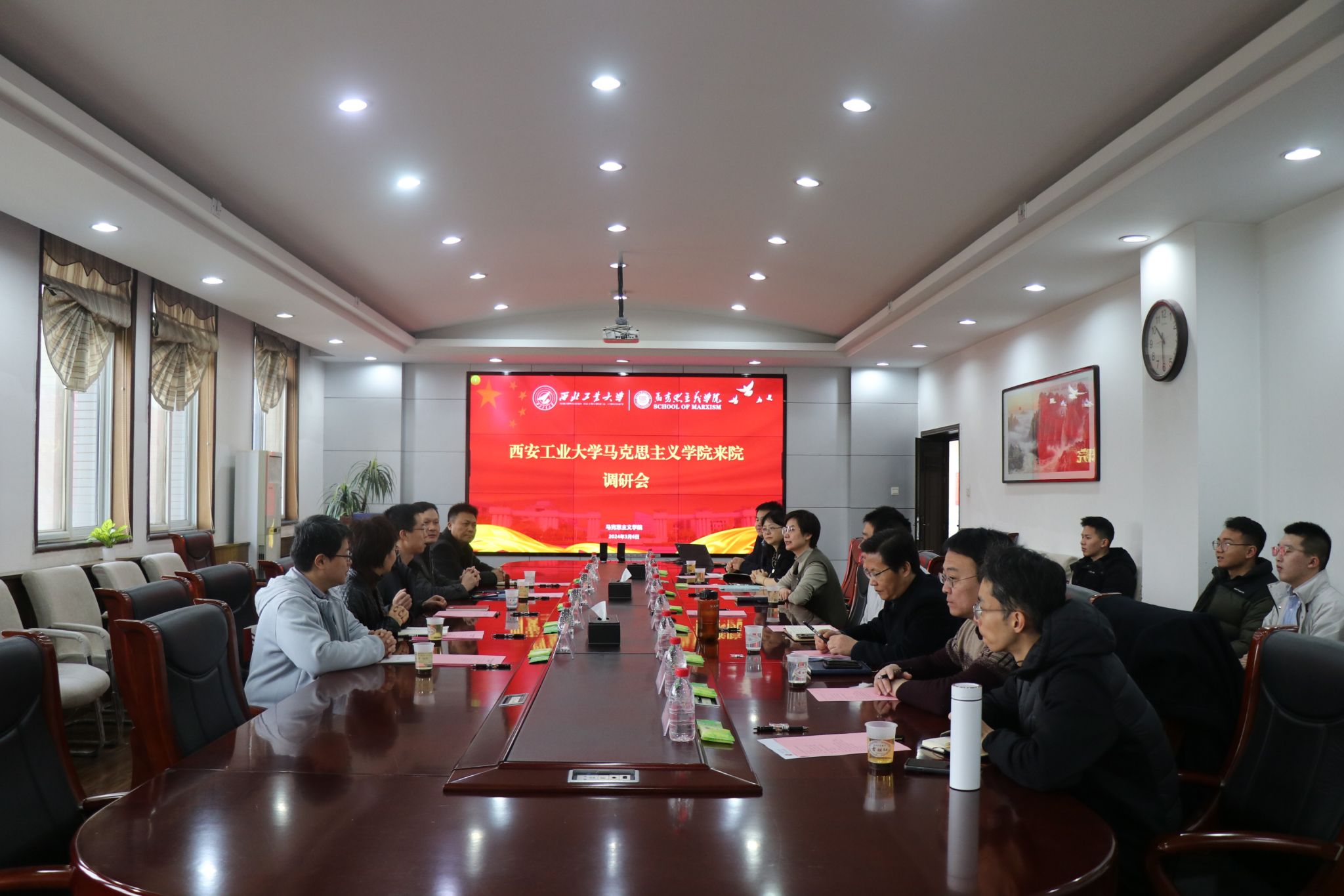 3月6日上午,西安工业大学PP电子游戏网站院长梁华平一行来PP电子官网PP电子游戏网站调研。学院党委书记蒲传新、副书记李刚,副院长贺苗、德法与形势政策系主任胡建发、马克思主义中国化研究系教学主任华艳君、中国近现代史基本问题研究系教学主任房小捷、马克思主义基本原理系教学主任杨永强、思想政治教育系副教授代家玮及硕士生代表等参加了此次调研会。会议由副院长贺苗主持。