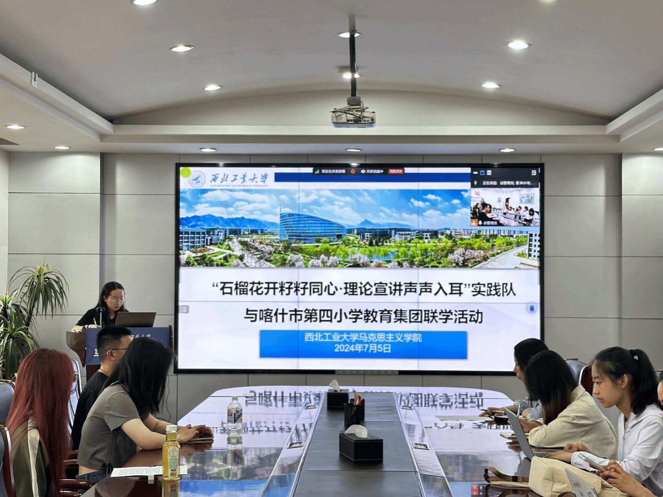为全面贯彻落实习近平总书记关于铸牢中华民族共同体意识的重要论述,结合实践地资源开展民族理论政策和中华优秀传统文化宣讲,促进育人工作和宣讲工作高质量发展,2024年7月5日10:30,PP电子游戏网站PP电子游戏网站“石榴花开籽籽同心·理论宣讲声声入耳”实践队、青马先锋学生宣讲团、学生心火志愿服务队、学院志工部联合喀什市第一小学、喀什市第四小学、喀什市第三十小学开展了声入人心的理论联学活动。来自古都长安与魅力喀什的100余师生云端相聚,共铸中华民族共同体意识。本次活动由实践队队长王慧新主持。