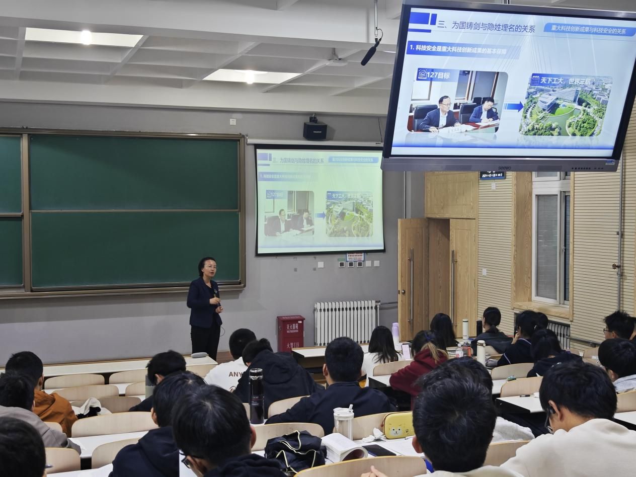 以研促教,助力新人。坚持思政课建设与党的创新理论武装同步推进。宁殿霞老师积极将党的创新理论融入思政课教学,不断更新教学内容,提升教学水平。她深入研究习近平新时代中国特色社会主义思想,形成了一系列回应时代命题的理论成果,并结合学生实际,将自己的最新研究成果与教学深度融合,引导学生从时代背景、理论内涵和实践价值等多方面理解党的创新理论,为学生提供前沿的理论视角。通过深耕新思想,宁殿霞老师激励学生奋斗拼搏,锻造为国铸剑本领,使学生对成长为“总师型”人才产生强烈的思想认同、情感认同、身份认同,为培养担当民族复兴大任的时代新人奠定了坚实基础。