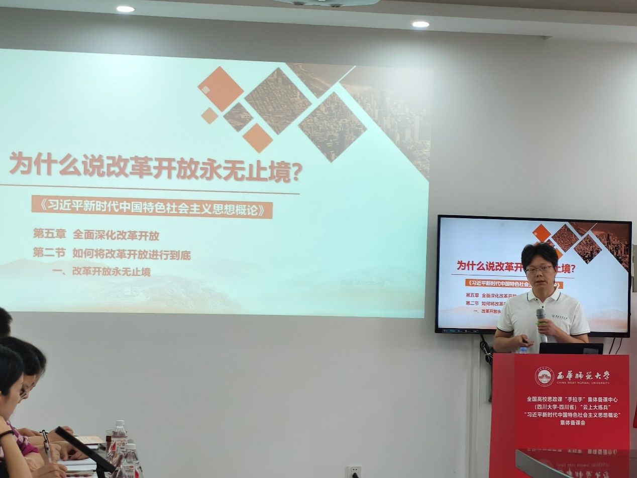 为深入推进习近平新时代中国特色社会主义思想进教材、进课堂、进头脑,切实提升思政课教学质量和水平,6月6日下午,全国高校思政课“手拉手”集体备课中心(四川大学——四川省)“云上大练兵”“习近平新时代中国特色社会主义思想概论”集体备课会在西华师范大学举行。PP电子游戏网站教师代表参加了此次集体备课会。