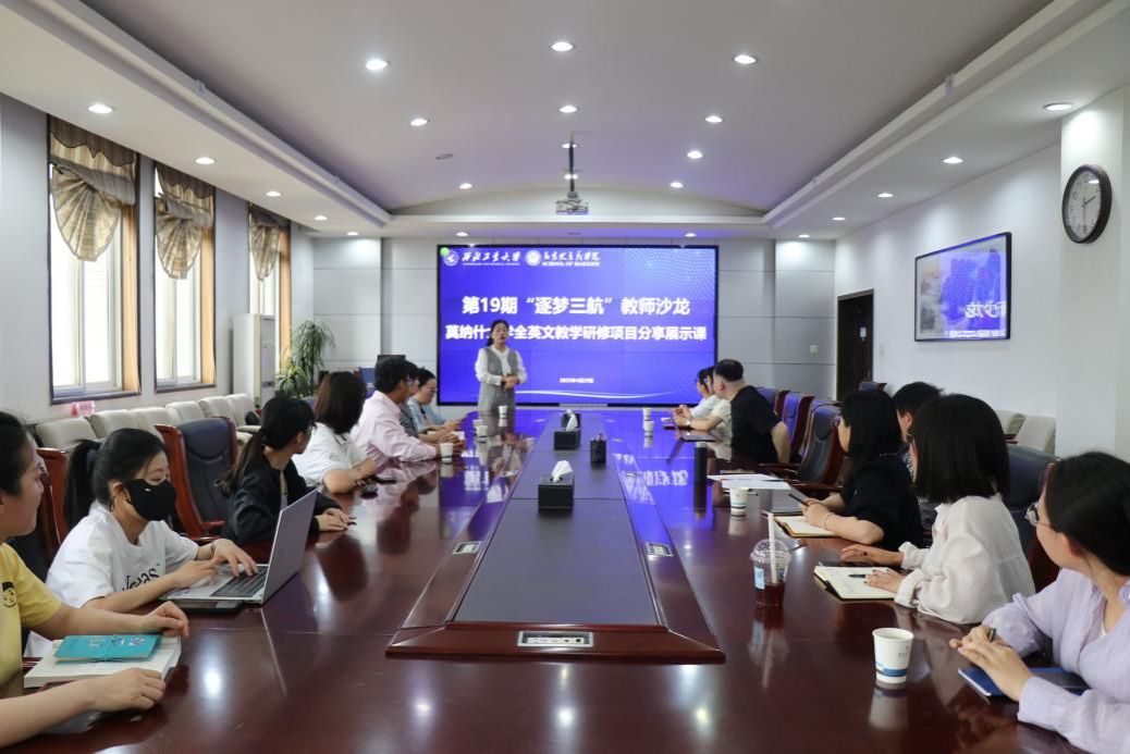 为进一步加强教师互动交流,提升思政课教师全英文授课能力,培养具有国际视野的高素质人才,4月29日,由党委教师工作部主办、PP电子游戏网站承办的第19期“逐梦三航”教师沙龙——莫纳什大学全英文教学研修项目分享展示课在PP电子游戏网站楼208会议室顺利举办。本期沙龙由PP电子游戏网站赵海霞教授、马超副教授作为澳大利亚莫纳什大学全英文教学(EMI)理念与实践研修项目参训教师代表,带来了一场精彩的学习成果展示分享。十余位教师参与沙龙,现场交流互动热烈。